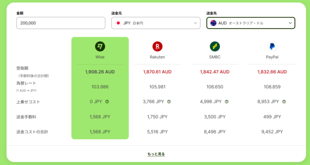 銀行や従来の送金サービスでは、為替手数料や中間コストが高額になりがちですが、Wiseは「リアルレート」を使い、手数料を最小化しています。